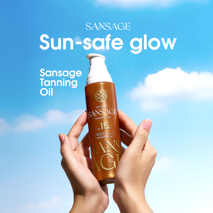 Glow like never before with Koncieve - Sansage Tanning Oil, your go-to formula for a deep, sun-kissed shimmer. Enriched with Beta Carotene, Coconut Oil, and Vitamin E, this luxurious tanning oil enhances your skin's natural tone while keeping it nourished, soft, and glowing.